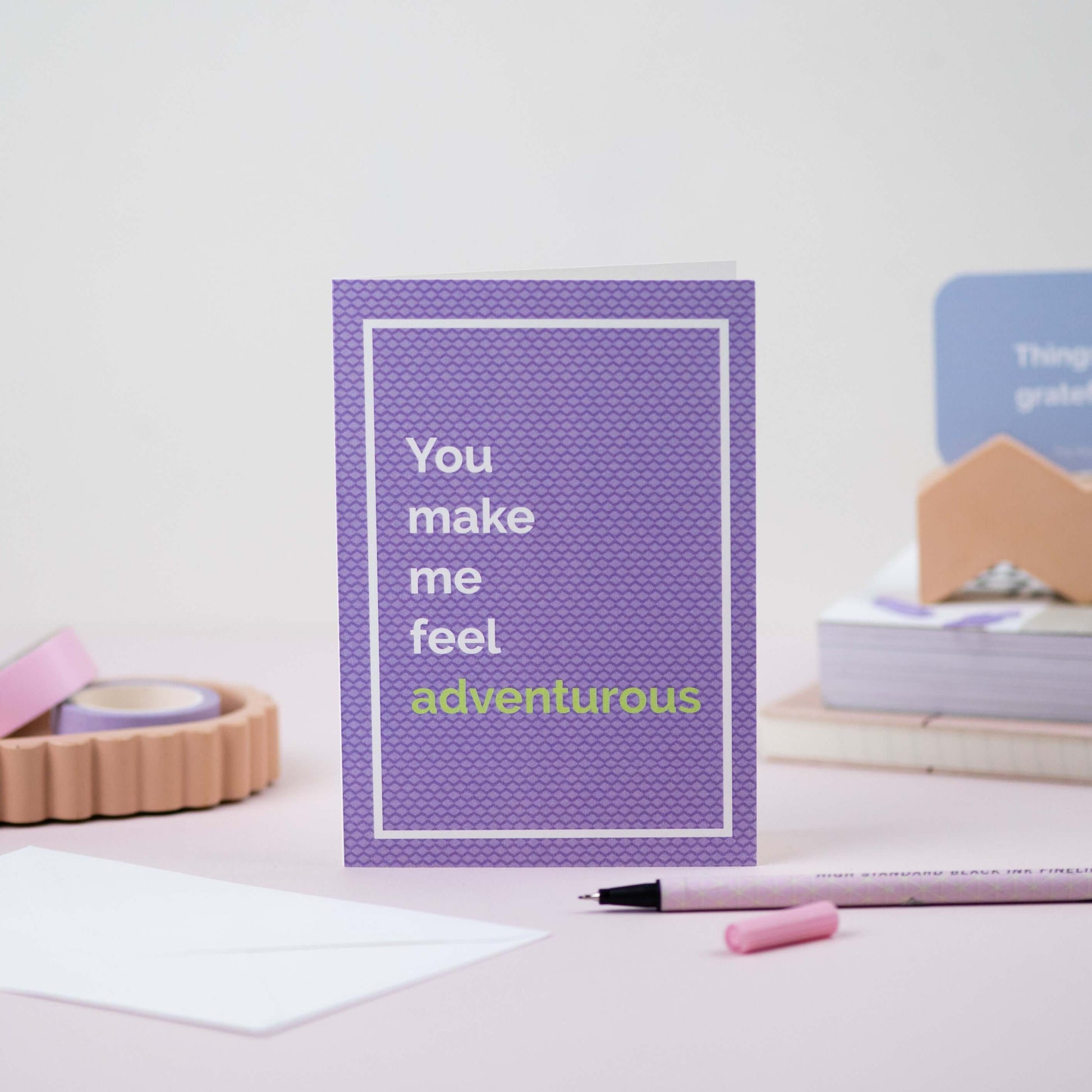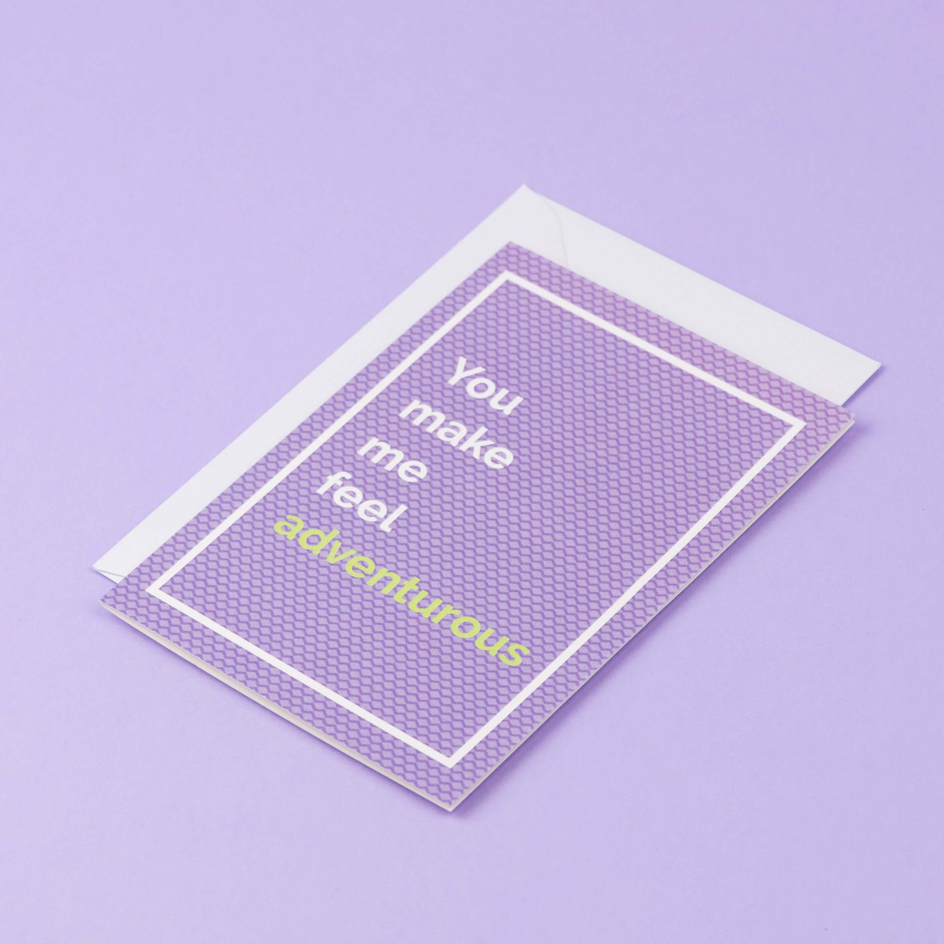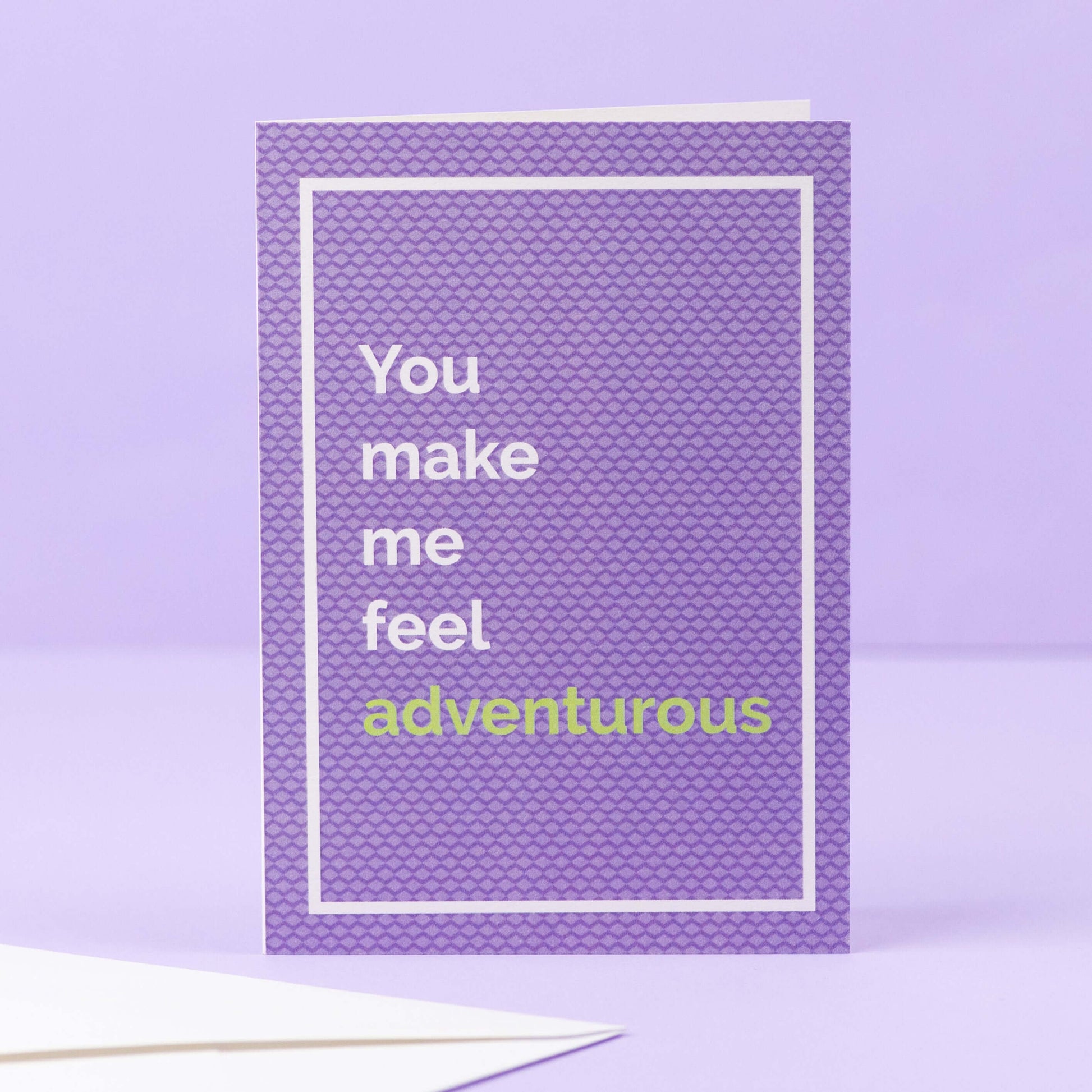 “You make me feel adventurous” è un biglietto di auguri originale dedicato a chi rende la vita più intensa, curiosa e piena di esperienze, e ti spinge ad uscire dalla tua zona di comfort.